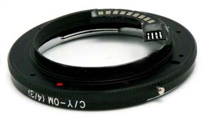 предназначен для установки объективов Contax/Yashica на фотоаппараты системы Olympus 4/3. Данный переходник удобен при использовании объективов с ручным управлением. Камера подтверждает точность наводки на резкость (подает звуковой сигнал, высвечивается световая информация на дисплее) при полунажатии на спусковую кнопку и попадании объекта в фокус. Переходник с чипом определяется фотоаппаратом как объектив с фокусным расстоянием 50мм и диафрагмой f/2.8. Эти значения не влияют на работу автоматики камеры, вы можете использовать объектив с любым фокусным расстоянием и относительным отверстием. Поддерживается фокусировка на бесконечность.