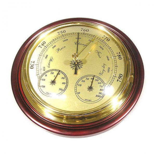 При помощи ручки, расположенной на стекле барометра, совместите фиксирующую стрелку с показывающей. Если атмосферное давление резко падает (показывающая стрелка отклоняется влево), следует ожидать усиление ветра, осадков, а зимой повышение температуры. При повышении давления (стрелка отклоняется вправо) можно ожидать ясной погоды, зимой - холодной. Во избежание коррозии, которая может привести к нарушению работоспособности, не рекомендуется хранить и эксплуатировать барометр в помещении, где находятся кислоты и щелочи, а также в помещении с повышенной влажностью.