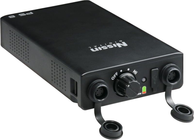 Nissin предусматривает возможность зарядки через USB- разъем, который обеспечивает постоянный ток в 5V 2A. Блок PS 8 может служить быстрым зарядным устройством в