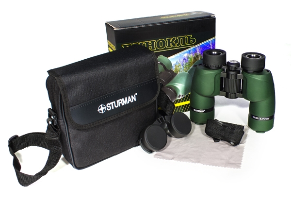 Конструкция корпуса бинокля разработана для эксплуатации в любых погодных условиях. Качество сборки и применение специальных мероприятий, таких как кольцевые резиновые уплотнения, герметезирующие клеи, смазки и мастики позволяют защитить внутреннее пространство. Для удобной настройки предусмотрена регулировка межзрачкового расстояния, наведение резкости с помощью механизма центральной фокусировки и диоптрийная коррекция правого окуляра. Бинокль Sturman 8x36 весит около 600 грамм и обладает достаточно большим увеличением 8 крат, поэтому, для длительных наблюдений, для уменьшения эффекта дрожания рук рекомендуем устанавливать прибор на штатив с помощью специального адаптера (не входит в комплект поставки), резьба штативного гнезда ¼ дюйма. Комплект поставки бинокля Sturman 8x36Поставляется в комплекте с нетеряемыми защитными крышками объективов и окуляров, широким ремешком и футляром для хранения и ношения. Футляр снабжён дополнительным кармашком для аксессуаров и надёжно закрывается на молнию и застёжку-липучку. Штативный адаптер не входит в комплект поставки и приобретается отдельно. Технические характеристики бинокля Sturman 8x36 зелёный