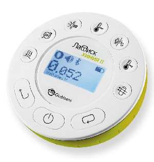Беспроводная лаборатория ЛабДиск Химия II - это полноценный мультисенсорный регистратор данных, с наличием экрана для вывода результатов измерений. ЛабДиск Химия умещается на ладони, а в корпус устройства встроены около 15 датчиков и портов для подключения дополнительных внешних датчиков, в случае необходимости.