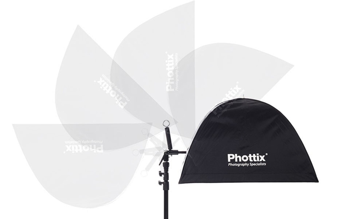 • Позволяет наклон на 180 градусов вместе с зонтом-софтбоксом Phottix Easy-Up, до 90 см высотой или диаметром.