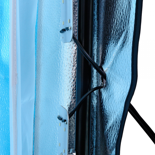 Фотобокс Falcon Eyes Studio Box 140 LED Складной фотобокс Falcon Eyes Studio Box 140 LED предназначен для каталожной фотосъёмки или для съёмки товаров для интернет-магазина. Он позволяет получать изображения, не требующие дополнительной обработки в Фотошопе или иных программах. С его помощью можно оперативно осуществить фотосъёмку продукции, например, новой коллекции одежды и быстро разместить фото на сайте магазина. Работа с фотобоксом Falcon Eyes Studio Box 140 LED не требует специальной «фотографической» подготовки и может проводиться силами персонала магазина. В сложенном виде, фотобокс не занимает много места и может храниться в любом подсобном помещении. Сборка и подготовка фотобокса к съёмке проста и занимает несколько минут. Светодиодные линейки расположены по периметру осветителя внутри корпуса. Серебристые внутренние отражающие поверхности, быстросъёмные рассеиватели и постоянная яркость источников света создают интенсивное равномерное освещение и дают возможность проводить съёмку, не меняя каждый раз настройки фотоаппарата или камеры смартфона. Фотобокс состоит из трубчатого каркаса и оболочки со светоотражающим слоем. Каркас собирается из стальных трубок и пластиковых соединителей. Оболочка имеет клапаны на молнии с обеих сторон, с помощью которых можно использовать дополнительные источники света (если хочется внести "художественный" акцент на изображение). На лицевой стороне оболочки имеется крепление (липучка) для светорассеивателя. Светодиодные осветители крепятся на трубки каркаса с помощью мощных магнитов по двум боковым и одной верхней грани фотобокса. Питание светодиодных линеек осуществляется от сетевого адаптера, провод к которому продевается в отверстии оболочки. К одному адаптеру подключается две линейки одновременно. Для создания заполняющего света от линеек в комплекте предусмотрены два рассеивателя, крепление которых осуществляется к трубкам каркаса за счёт металлических крючков на резинке. В комплекте с фотобоксом идут три сменных пластиковых фона (белый, чёрный и голубой). Крепление фона осуществляется на прищепки, которые в свою очередь держатся на «дальней» (от фотографа) верхней грани фотобокса. Материал (типа полиэтилена), из которого изготовлены полотна фонов, позволяет при бережном отношении содержать в его в идеальном состоянии (без заломов, растяжек, пятен...) даже в условиях интенсивного использования. Материал фонов водоотталкивающий — его можно использовать при съёмке жидкостей, не боясь его повредить. Установив импульсный или светодиодный осветитель внутрь, фотобокс Falcon Eyes Studio Box 140 LED можно использовать как напольный софтбокс большого размера для художественной съёмки моделей (в комплекте предусмотрен фронтальный рассеиватель, который с помощью ленты «велкро» крепится на лицевой стороне фотобокса).
