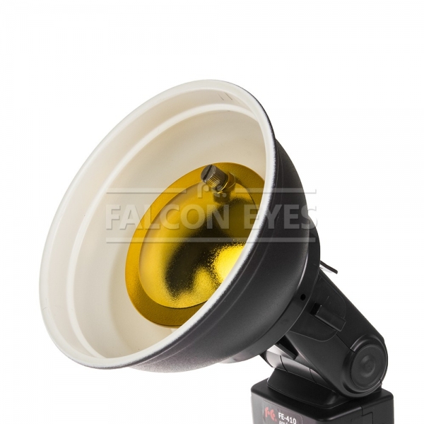 • дефлектор — 3шт. (белый, серебристый и золотой), превращает рефлектор в портретную тарелку, изготовлен из металла, применяется для смягчения светового потока, формирует умеренные по глубине и жесткости тени, благодаря этому часто применяется в портретной съемке.