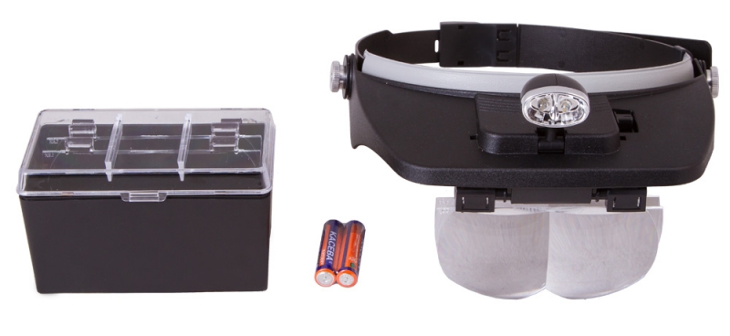 Налобная лупа Levenhuk Zeno Vizor H3 комплектуется сменными линзами. Линзы имеют увеличения в диапазоне от 1,2 до 3,5 крат. При необходимости можно комбинировать линзы, устанавливая их парами. Лупа имеет встроенную светодиодную подсветку, яркости которой хватает для отличного освещения рабочей области даже в полной темноте. Лупу Levenhuk Zeno Vizor H3 удобно использовать при проведении любых профессиональных или домашних работ с мелкими предметами. Фиксируя ее на голове с помощью обруча, вы оставляете свои руки полностью свободными. Вы сможете заниматься рукоделием, изучать механизмы часов, паять электронные платы или работать с масштабными моделями. Все линзы лупы изготовлены из оптического пластика. Они не искажают цвета и детали, позволяют видеть четкие контуры предметов. Подсветка работает от батареек типа ААА, которые входят в комплект.