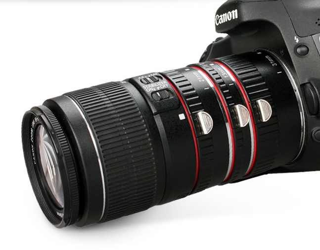 Макрокольца для Canon представляют собой цилиндр, который ставится между фотоаппаратом и объективом. Объектив удаляется от сенсора, что позволяет ему сфокусироваться ближе. Удлинительные кольца выпускаются для многих байонетов и резьбовых стандартов крепления объективов. Тем самым вы можете получить большое количество новых предметов съёмки на имеющемся оборудовании. Они не вносят дополнительных оптических элементов между предметом и сенсором камеры, таким образом минимизируя потенциальные потери качества изображения. С помощью макроколец вы можете создавать фантастические макро-фотографии, не покупая дорогостоящие макрообъективы.