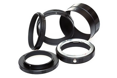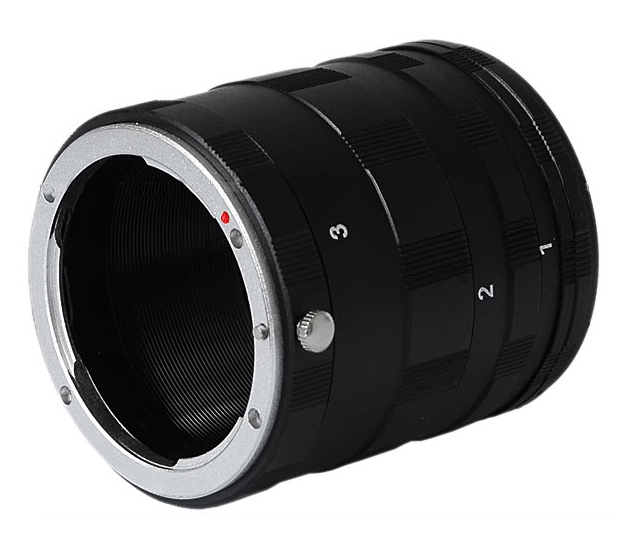 представляют собой цилиндр, который ставится между фотоаппаратом и объективом. Объектив удаляется от сенсора, что позволяет ему сфокусироваться ближе. Удлинительные кольца выпускаются для многих байонетов и резьбовых стандартов крепления объективов. Тем самым вы можете получить большое количество новых предметов съёмки на имеющемся оборудовании. Они не вносят дополнительных оптических элементов между предметом и сенсором камеры, таким образом минимизируя потенциальные потери качества изображения. С помощью макроколец вы можете создавать фантастические макро-фотографии, не покупая дорогостоящие макрообъективы. Набор состоит из макроколец разной длины, которые по отдельности или в сочетании позволяют делать фотографии на близком расстоянии. Чем больше колец будет добавлено, тем ближе будет фокус и тем выше увеличение.