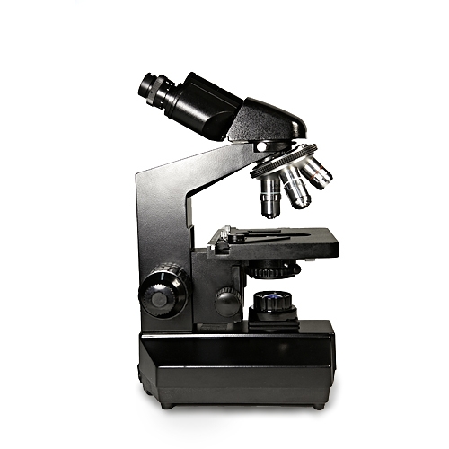 Оснащен поворотной (360º) бинокулярной насадкой, с углом наклона в 30º. 4 объектива легко установить в рабочее положение с помощью револьверного механизма. Классический (по Келеру) тип освещения имеет возможность регулировки апертурной и полевой диафрагм.
