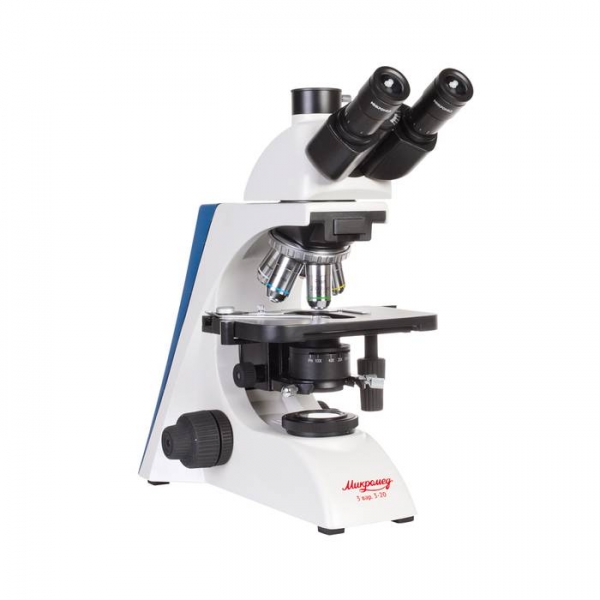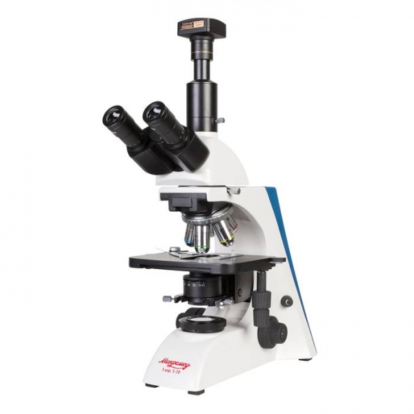 Тринокулярный микроскоп МИКРОМЕД 3 вар. 3-20 М предназначен для наблюдения и морфологических исследований препаратов в проходящем свете по методу светлого поля, а также по методу темного поля, фазового контраста и в поляризованном свете в комплекте с соответствующими устройствами, поставляемыми по дополнительному заказу. Микроскоп может быть использован в различных областях медицины, в биологии, ботанике, химии и других областях науки. Используется при диагностических исследованиях в клиниках и больницах, а также для учебных целей в высших учебных заведениях. На микроскопе можно изучать окрашенные и неокрашенные объекты в виде мазков и срезов. Конструкция тринокулярной визуальной насадки микроскопа позволяет выводить изображение в режиме реального времени на экран ПК с помощью видеоокуляра (в комплект не входит). Видеоокуляр устанавливается в специальный выход — канал визуализации. Это позволяет одновременно наблюдать изображение через окуляры микроскопа и на экране ПК. Микроскоп рассчитан на длину тубуса «бесконечность», объективы стандарта DIN, парфокальная высота объективов 45 мм.