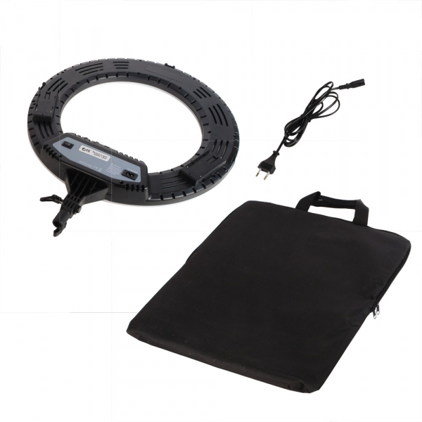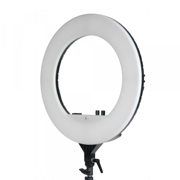 Осветитель кольцевой Falcon Eyes BeautyLight 480G LED Светодиодный осветитель BeautyLight 480G LED лёгкий и компактный осветитель с источником света в виде кольцевой панели со светодиодами, с регулируемой мощностью светового потока и цветовой температурой. Для использования визажистами, гримёрами и стилистами важную роль играют бестеневой характер и возможность настройки цветовой температуры освещения. Небольшие размеры осветителя и низкий уровень потребляемой светодиодами мощности делают этот осветитель привлекательным также для использования в студии для портретной, предметной, рекламной и других видов фотосъемки. Корпус осветителя изготовлен из прочного ABS пластика. Под белым молочным рассеивателем находятся 480 ярких светодиода. На обратной стороне находятся тумблер включения/выключения питания, два гнезда для установки аккумуляторов N-PF, разъём для подключения к сети, регуляторы яркости и цветовой температуры, а также 4 холодных башмака для установки дополнительного оборудования (штанги, держатели для смартфонов, микрофонов и пр.). Дополнительно на корпусе осветителя предусмотрены два отверстия с резьбой 1/4'' для установки аксессуаров с резьбовым креплением. Яркость и цветовая температура меняются бесступенчато. Для установки на стойку (с посадочным диаметром пальца 15 мм) служит шарнир, который позволяет наклонить осветитель на угол до 90° в обе стороны и зафиксировать его в этом положении при помощи винтового фиксатора.