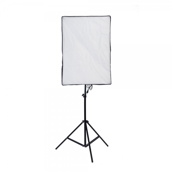 Осветитель светодиодный Falcon Eyes KeyLight 518 SB5070 LED Falcon Eyes KeyLight 518 SB5070 LED - светодиодный комплект предлагает фотографам и видеооператорам готовое решение, подходящее для съемки в различных жанрах – от съемок на документы до съемки рекламных каталогов. В комплект входит светильник с 5 патронами E27, 5 светодиодных ламп с дневным светом (5400К) мощностью 18 Вт каждая, софтбокс 50х70 см и 3-х секционная стойка высотой 190 см. 5-ламповый светодиодный осветитель Осветитель оборудован 5 патронами стандарта Е27, в которые устанавливаются светодиодные лампы. На задней панели расположены два переключателя, каждый из которых управляет функцией включения/выключения для двух ламп расположенных по периметру, а центральная лампа включается общим переключателем, который находится на кабеле питания. Осветитель питается от сети 220 В и имеет стандартный разъем для установки на стойки с креплением 5/8". Осветитель можно использовать самостоятельно или вместе с софтбоксом 50х70 см из комплекта поставки. Софтбокс 50х70 см В комплект входит прямоугольный световой модификатор размером 50х70 см, поддерживаемый 4-мя стальными спицами, которые устанавливаются в осветитель KeyLight 518 и формируют монолитную конструкцию. Внутри софтбокса находится фактурная серебристая ткань, спереди на липучки крепится рассеиватель. Софтбокс создает мягкое рассеянное освещение без резких теней. Входящий в комплект софтбокс предназначен для использования только с осветителем KeyLight 518 и светодиодными лампами. Стойка 190 см Алюминиевая стойка с пружинным амортизатором (на нижней секции) поднимается на высоту до 190 см и складывается до 69 см. Пружинный амортизатор предохранит оборудование от повреждения при случайном ослаблении зажимов. На ножки стойки можно установить ролики (приобретаются отдельно).