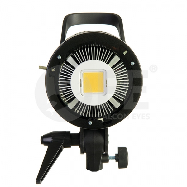Осветитель светодиодный Falcon Eyes Studio LED 75 Студийный светодиодный осветитель Falcon Eyes Studio LED 75 с мощностью 75 Вт, цветовой температурой 5600К, байонетом Bowens, ЖК дисплеем и пультом дистанционного управления. Осветитель применяется в фото- и видеосъемке в качестве источника основного, заполняющего или контрового света, для освещения фона, создания бликов и акцентирования деталей. Мощность светодиода 75 Вт Светодиодный чип последнего поколения обеспечивает мощный световой поток со стабильной цветовой температурой. Световой поток Studio LED 75 аналогичен световому потоку галогенного осветителя мощностью 350 Вт. Ресурс работы светодиодного чипа 100000 часов. Байонет Bowens Осветитель Studio LED 75 совместим со всеми светоформирующими насадками с байонетом Bowens, что позволяет использовать больше возможностей по сравнению с обычными осветительными приборами. Эффективный светодиод выделяет мало тепла и почти не нагревается (по сравнению с галогенными источниками постоянного света), поэтому можно использовать даже те насадки, которые предназначены только для импульсных источников света. В комплекте поставляется рефлектор 180 мм. ЖК-дисплей На панели управления расположен большой контрастный ЖК дисплей с подсветкой, на котором отображается мощность осветителя, температура нагрева осветителя, а также информация о рабочем канале и группе. Цифровой диммер Осветитель оснащен новым цифровым диммером для точной настройки мощности, регулировка осуществляется в диапазоне от 10% до 100% с шагом 1%. Дистанционное управление Осветитель комплектуется пультом дистанционного управления. С помощью пульта можно включать/выключать каждый отдельный осветитель в студии и регулировать его мощность. Пульт совместим со всеми приборами серии Studio LED и не требует настройки синхронизации. Малошумный вентилятор Встроенный малошумный вентилятор охлаждает корпус и не мешает записи звука во время видеосъемки. Встроенная система защиты сработает при остановке вентилятора или при повышении температуры прибора до 70˚С, осветитель автоматически выключится, отобразив на дисплее соответствующую индикацию. Алюминиевый корпус Прочный алюминиевый корпус оборудован удобной рукояткой и кронштейном, позволяющим установку осветителя под наклоном. В кронштейне предусмотрен держатель зонта.