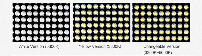 - Три модели для выбора нужных световых эффектов - Белый свет (5600K), желтый свет (3300K) и Bi-color (3300K-5600K)