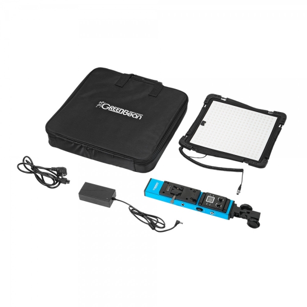 Осветитель светодиодный GreenBean FreeLight 288 bi-color Гибкая и ударопрочная панель осветителя FreeLight 288 bi-color, защищенная от пыли в лаги по стандарту IP67, позволяет использовать прибор в самых неблагоприятных условиях вне студии. Мощности 288 современных сверхярких SMD светодиодов (CRI более 96) будет достаточно для решения большинства задач съемки. В комплекте удобная черная сумка для переноски с органайзером внутреннего пространства. Липучки надежно фиксируют световую панель внутри сумки, исключая возможность повреждения при перевозке. Мощность светового потока, а также цветовая температура плавно регулируются при помощи модуля управления, получающего питание от аккумуляторов V-mount или бытовой сети 220В. Модуль управления может быть размещен на самой панели при помощи липучек, либо отсоединен от нее для облегчения веса. Во втором случае управляющий сигнал мощностью светового потока и цветовой температурой передается по специальному витому кабелю, входящему в комплект. Для удобства пользования на корпусе модуля имеется цифровой дисплей и индикаторы состояния дисплея. Приобрести осветитель GreenBean FreeLight 288 bi-color светодиодный можно как для съемки в студии, так и для выездных съемок — кинопроизводства, телевидения, свадебных видеосъемок.