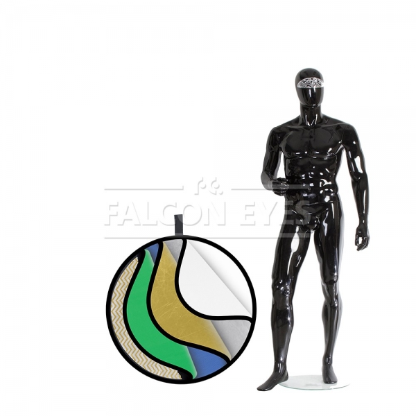 Круглый отражатель 7 в 1: золотистый/серебристый/белый отражающий/ белый просвечивающий/серебристые и золотистые полоски/зеленый/синий. Рабочий диаметр 56 см. Используется в предметной и портретной съемке, а также для подсветки участков кадра. Конструкция состоит из пружинного стального обруча с натянутой на него полупрозрачной рассеивающей тканью и чехла на молнии со светоформирующими поверхностями. Золотистая поверхность придает отраженному свету золотистые тона, добавляет теплого света в сцену. Серебристая поверхность используется для получения жесткого света, что позволяет получать контрастное изображение с четкими тенями. Высокий коэффициент отражения делает эту поверхность одной из часто используемых, найдет применение даже в пасмурную погоду. Белая отражающая поверхность позволяет получить равномерный и мягкий световой поток для подсветки теней и выравнивания светотеневого рисунка, используется как заполняющий источник. Не искажает цветовую температуру источника освещения.