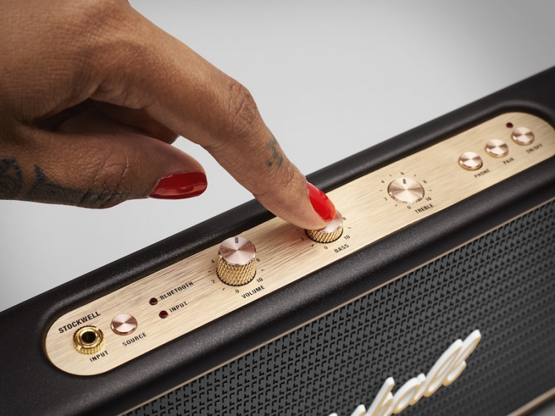 Marshall Stockwell выполнена в черном цвете и имеет чехол с красной мягкой подкладкой, который защитит поверхность устройства от царапин и потертостей. На решетке динамиков красуется золотистая надпись Marshall, а панель управления также имеет золотистый цвет. Акустика имеет 4 динамика, два из которых низкочастотные и два - высокочастотные. Общая пиковая мощность составляет 24 Вт, а диапазон частот 50 - 20000 Гц. Модель обеспечит высокое качество звука и четкие басы где угодно, будь то помещение или открытая местность. Marshall Stockwell позволяет воспроизводить музыку как при помощи подключения кабелем mini-jack 3.5mm, так и при помощи Bluetooth. Встроенного аккумулятора хватит для проигрывания до 25 часов, а возможность зарядки портативных устройств делает колонку более универсальной.