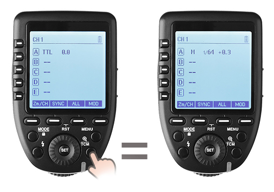 16 групп и 32 канала для дистанционного управления и синхронизации. Можно добавить в настройках ID от 01 до 99 и осуществлять синхронизацию при условии совпадения каналов и дистанционных ID ведущей и ведомой вспышки, при этом эффективно избегая интерференции сигнала. Полная поддержка протокола TTL, высокоскоростная синхронизация 1/8000с, режим стробоскопа, ручная вспышка, компенсация экспозиции вспышки, функция изменения TCM, функция увеличения изображения, настройка единичного кадра или серии кадров, управление группой пилотных ламп, групповое зуммирование, настройка производительности всех групп одновременно и т.п. Нажать и удерживать кнопку TCM. Функция изменения TCM позволяет сохранять настройки вспышки при переключении из режима TTL в ручной режим. Короткое нажатие кнопки TCM. Функция увеличения позволяет переключать группы из режима одной группы в режим нескольких групп. Настройка одного или нескольких кадров Настройка ID от 01 до 99.