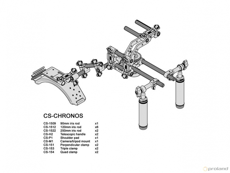 Профессиональный комплект поддерживающих штоков для HDSLR-камер CS-CHRONOS позволяет осуществлять регулировку положения по осям x и y. Таким образом обеспечивается наиболее выгодная точка для съемки, независимо от того, используете ли вы оптический видоискатель или LCD-экран на DSLR-камере. Благодаря модульной конструкции комплектов поддерживающих штоков Cambo, у пользователя есть возможность подсроить оборудование под свои нужды. CS-CHRONOS может быть использован с любой системой фоллоу-фокус или компендиумом. Сохраненные в памяти настройки помогают существенно ускорить и облегчить процесс подготовки комплекта к работе после транспортировки. Также комплект CS-ERIS поставляется с телескопическими ручками CS-H2, предоставляя пользователю полный контроль над расположением рукояток. Система кронштейнов CS-154 позволяет использовать нижние, боковые и верхние поддерживающие штоки для дополнительных возможностей крепления и настройки.