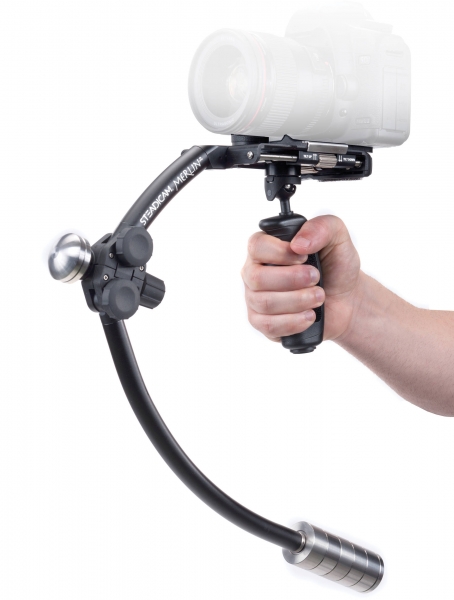 Steadicam Merlin может обеспечить такую же плавность перемещения, как его старшие и более дорогие собратья, которые используются на многочисленных киноплощадках Голливуда. Эта система стабилизации камеры позволяет Вам создавать «летящий» кадр везде, где вам это необходимо – спускаетесь ли Вы вниз или поднимаетесь по ступенькам, снимаете в закрытом помещении или на открытом пространстве, или пробираетесь через толпу. Быстросъемное крепление позволяет мгновенно устанавливать Вашу камеру на стедикам или убирать его оттуда для ведения съемки со штатива. Steadicam Merlin сконструирован таким образом, чтобы снизить нагрузку на руки оператора. Он такой легкий, что весит меньше, чем банка газировки. В собранном и полностью готовом к работе состоянии он весит менее 1 кг. Его уникальная конструкция обеспечивает надежную стабилизацию камеры и позволяет использовать объективы с большим фокусным расстоянием, что по достоинству оценят профессионалы. Уникальная система контрбаланса из 2-х экстендеров регулировки весового баланса увеличивает инерционную стабильность стедикама. А также позволяет произвести точную настройку в зависимости от веса используемой камеры.