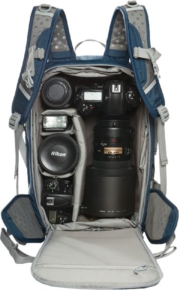 Рюкзак имеет съемный внутренний отсек для фотокамеры с оборудованием, улучшенную всепогодную защиту и небольшой вес, комфортный и удобный в любой ситуации и местности. Внутреннее пространство рюкзака можно компоновать на свое усмотрение, а вынув внутренний чехол для камеры и оборудования можно получить обычный рюкзак.