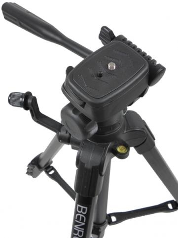 Легкий штатив для небольших цифровых фото- и видеокамер, из профилированного алюминия, с несъемной одноручной 3D головкой и быстроcъемной площадкой. Центральная колонна с подъемным реечным механизмом.Фиксаторы ног-клипсы. Ручка под хват левой рукой.