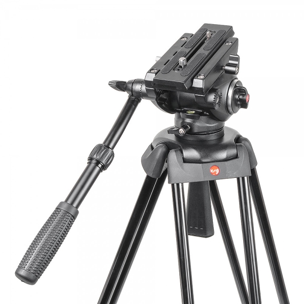 Съёмная голова с жидкостным демпфированием и системой постоянного контрбаланса поворачивается на 360˚ по горизонтали, наклоняется вперёд и назад на углы от -80° до +90°, имеет независимые фиксаторы панорамирования и независимый регулятор вертикального демпфирования. Голова изготовлена из алюминиево-магниевого сплава. Благодаря жидкостному демпфированию все движения происходят плавно и без рывков. Дополнительно голова оснащена предохранителем площадки, кнопка которого находится на левой стороне. На быстросъёмной площадке предусмотрен винт диаметром 1/4" и 3/8“ (входят в комплект), подпружиненный штифт и противоскользящая вставка. Также на левой стороне головы есть два отверстия с системной резьбой 1/4" и 3/8“ для установки дополнительного оборудования или, в зависимости от резьбы на вашей камере, в одно из отверстий можно ввернуть «лишний» винт для исключения его потери. Площадку можно смещать вперёд и назад.