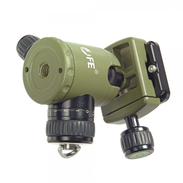 Шаровая голова обладает высокой прочностью и прецизионным исполнением. Все движения площадки с камерой происходят плавно и без «рывков». Особенностью данной штативной головы является механизм фрикционного контроля, который позволит настроить предустановленную силу трения шара в свободном состоянии. Рукоятка фиксации шара оборудована вращающимся диском с цифровой шкалой, это позволяет запомнить установленное регулятором усилие. Фиксатор на оси панорамирования работает независимо от фиксатора шара и позволяет регулировать вращение, не теряя выбранного наклона камеры. Быстросъемная площадка оборудована механизмом безопасности, который предотвращает падение камеры при случайном ослаблении фиксатора. Прорезь под 90° обеспечивает возможность перевода камеры между горизонтальным и вертикальным форматами. Выравнивающий пузырьковый уровень поможет выставить камеру по горизонту.