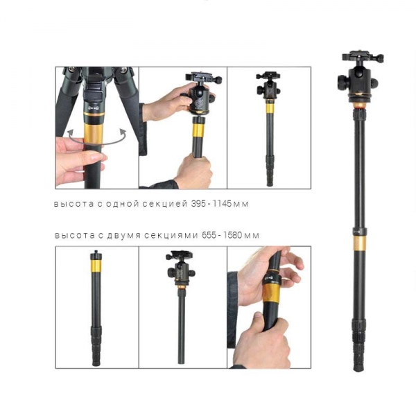 • Ноги штатива состоят из 5 секций и складываются телескопически.