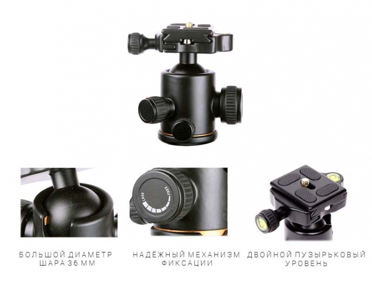 • Шаровая штативная головка с возможностью вращения на 360° для съёмки панорам (в комплекте)