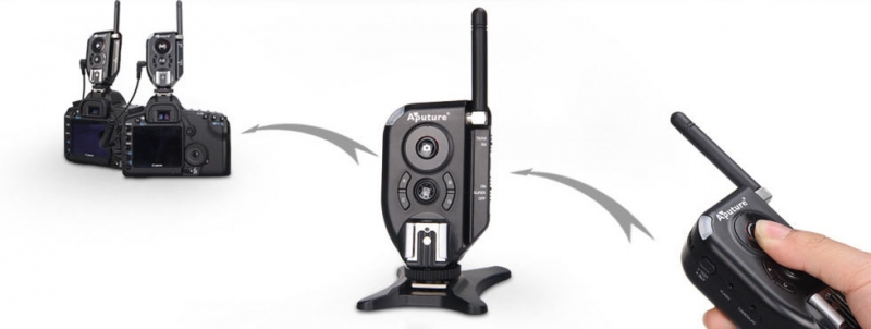 • Режим реле. Позволяет осуществлять управление на дальних дистанциях. Запускает вспышку или камеру на расстоянии более 500 метров. Третий передатчик ретранслирует сигнал на более дальнее расстояние. Часто используют для съемки дикой природы и спортивных мероприятий. Также может запускать несколько камер или вспышек