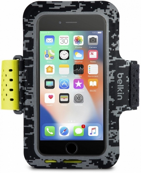 Belkin Sport-Fit Pro Armband обеспечит первоклассную защиту iPhone 6/7/8 от пыли, грязи и пота, а также позволит коммуникатору быть все время рядом, не занимая при этом рук. Чехол представляет собой кармашек с вертикальной загрузкой смартфона и прозрачной передней стенкой. Сзади имеется специальный отсек на липучке для пластиковых карт или наличных денег. Внутренняя прозрачная стенка имеет матовую поверхность и не препятствует быстрому извлечению коммуникатора. Для кнопки Home в чехле имеется специальный вырез для полноценного использования Touch ID.