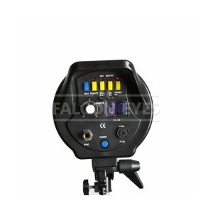 Студийная вспышка, оборудованная цифровым дисплеем, предназначенная для освещения при фотосъемке фотоаппаратами, имеющими функцию съемки с внешними фотовспышками. Вспышка может синхронизироваться как по внешнему световому импульсу, так и с помощью синхрокабеля, присоединенного непосредственно к фотоаппарату. Синхронизировать вспышку можно как при помощи встроенной в фотоаппарат вспышки, или вспышки, непосредственно соединенной с фотоаппаратом, так и с помощью инфракрасных синхронизаторов, устанавливаемых на фотоаппарат. Рекомендуется использовать инфракрасный синхронизатор TR-1 фирмы Falcon Eyes.
