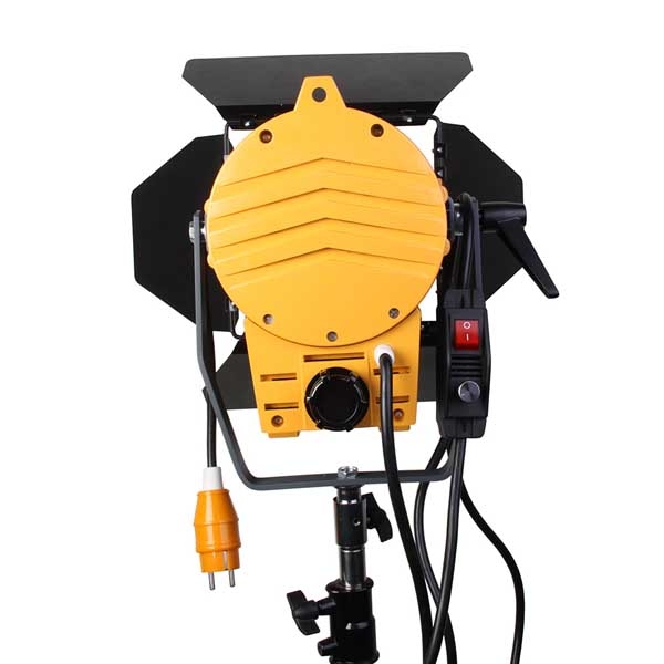 Обеспечивает возможность получения как равномерных широких потоков заливающего света, так и небольших ярких световых пятен с резкими границами. На расстоянии 2 м от осветителя максимальный диаметр светового пятна составляет 200 см, минимальный 50 см. Вращая ручку на задней стенке прибора оператор перемещает лампу и металлический сферический отражатель внутри конструкции изменяя, тем самым как диаметр светового пятна, так и его яркость. Большие металлические шторки могут поворачиваться на 360 градусов, и также служат для формирования нужной формы светового пятна. Фронтальная линза Френеля изготовлена из стекла и защищена металлической сеткой.