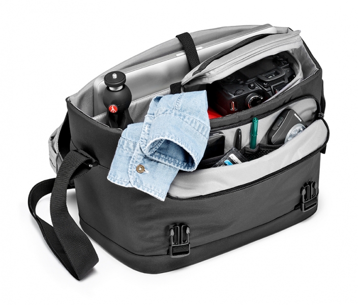 Многофункциональная сумка для повседневного использования. Съемный чехол для защиты фотокамеры, отделения для 15'' ноутбука, различных аксессуаров и личных вещей. Съемный чехол, оснащенный системой защиты Manfrotto, позволяет безопасно переносить DSLR камеру с установленным зум-объективом и дополнительным объективом. Регулируемый плечевой ремень. Молния в верхней части сумки обеспечивает быстрый доступ к содержимому. Характеристики