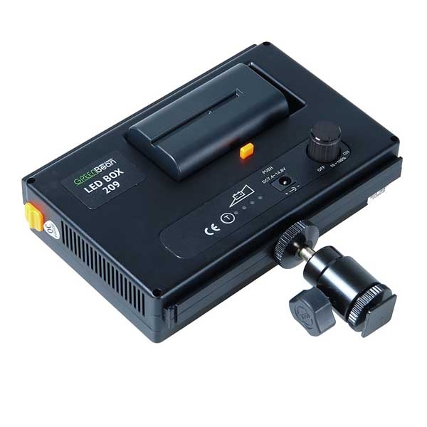 GreenBean LED BOX 209 представляет собой плоский источник света с расположенными по всей площади 209 яркими светодиодами. Прибор воспроизводит мягкий и яркий пучок света с цветовой температурой 5600К (дневной свет), в комплекте фильтр 3200К (лампа накаливания). Компактный и легкий корпус с тонкой рамкой. Толщина корпуса всего 50 мм (с установленными аккумуляторами), благодаря этому его можно использовать там, где будет трудно разместить обычный осветитель. Сверху и снизу на корпусе находятся салазки, для соединения нескольких приборов GreenBean LED BOX 209 в группу. Конверсионный и рассеивающий фильтры, фиксируются с помощью магнитных защелок и значительно расширяют возможности осветителя. Малое энергопотребление и тепловыделение обеспечат экономичную и комфортную работу.