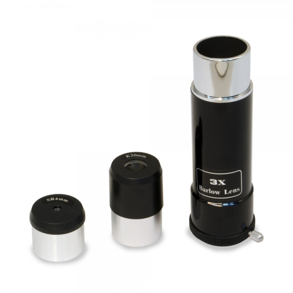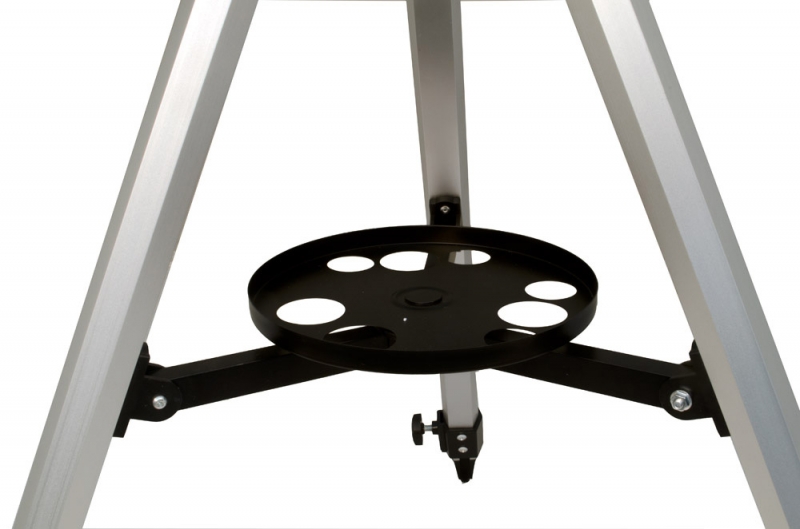 Телескоп комплектуется двумя окулярами и линзой Барлоу, позволяющей увеличить фокусное расстояние телескопа в 3 раза. Начинать наблюдение рекомендуется с окуляра 20 мм (35x), обеспечивающего хороший обзор. Короткофокусный окуляр 4 мм (175x) позволит изучить выбранный астрономический объект более детально. Азимутальная монтировка очень проста в управлении. Монтировки такого типа позволяют перемещать трубу телескопа по высоте и азимуту. Алюминиевая тренога обеспечивает устойчивое положение конструкции. Благодаря удобному лотку дополнительные аксессуары всегда будут под рукой.