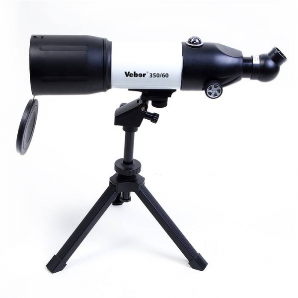 Компактный телескоп-рефрактор. Удобен как для домашних астрономических (и не только) наблюдений, так и для вылазок на природу. Его длина всего 45 см, он легкий и компактный. При этом телескоп вовсе не детская игрушка! Его ахроматическая оптика дает хорошее, четкое, резкое изображение без окрашенности по краям поля зрения. С набором окуляров, входящих в комплект, можно получить увеличение от 17,5х (ближняя точка фокусировки ок. 5м) до 116,4х. Диаметр объектива - 70 мм. Об окулярной части следует сказать особо: она расположена под углом 45° к оси прибора, и может поворачиваться вокруг своей оси на 360° (8 фикс.положений). Все это делает очень комфортным наблюдение - как из положения сидя, так и из положения стоя. При этом изображение не зеркальное, где "лево" и "право" поменялись местами, а прямое! (в конструкции используется призма Шмидта с "крышей"). Таким образом, этот телескоп можно использовать не только по прямому назначению, но и как зрительную трубу. Что можно увидеть в этот телескоп: кратеры луны диаметром ок.10 км, кольца Сатурна, Марс. Его проницающая способность 10.99 звёздных величин - крупные скопления галактик также будут доступны для любознательных наблюдателей. В комплекте поставляется специальный настольный штатив. Он имеет механизм плавных подвижек по вертикали и по горизонтали - с помощью вращающихся рукояток. Т.к. крепление трубы осуществляется с помощью винта 1/4", при необходимости можно использовать любой фотоштатив.