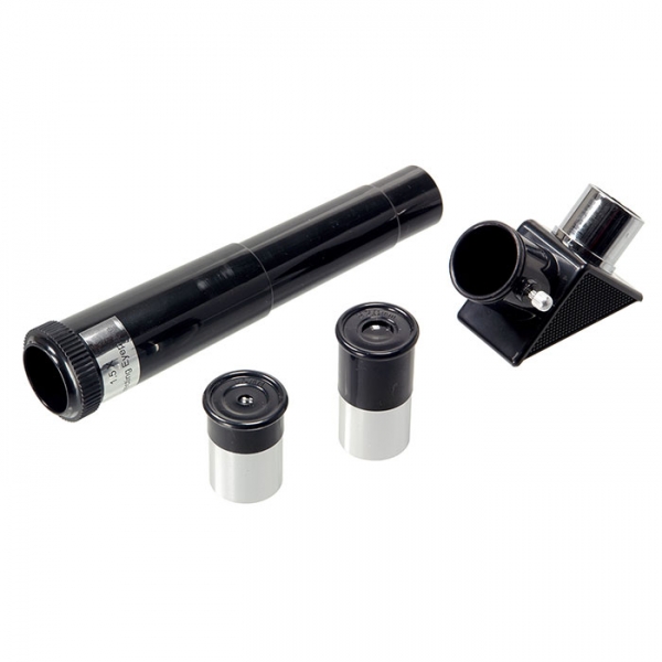 Что можно в него увидеть? В него можно увидеть лунные кратеры диаметром больше 10 км, Марс, Сатурн и фазы Венеры. С помощью сменных окуляров (в комплекте 2 шт.), можно получить увеличение от 18х до 90х. Окулярная часть с 90° зеркалом позволяет удобно вести наблюдение, разместив прибор просто на столе (высота штатива 360 мм). Наблюдения днем лучше вести при увеличении 18х (с окуляром 20 мм), тогда ближняя точка фокусировки будет около 5 метров. Прибор удобно укладывается в противоударный двухслойный кейс для переноски. Сборка занимает не больше трех минут. Так с ним удобнее выезжать загород, где и небо чище и лучше видны звезды и окружающие пейзажи.