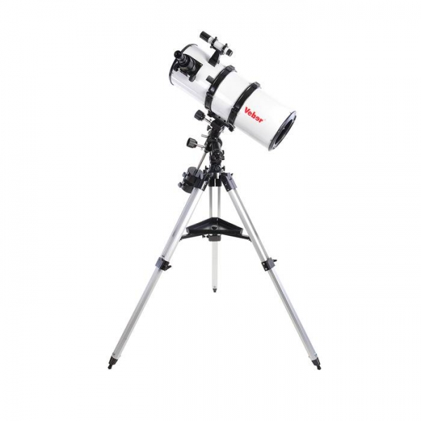 Телескоп поставляется с профессиональной монтировкой немецкого типа EQ4 со встроенным искателем полюса (это оптическая трубка с перекрестьем, интегрированная внутрь монтировки). Мощный алюминиевый штатив снабжен металлическими распорками, на которые можно установить столик для аксессуаров. В общем, Veber 800/203 очень надежный, устойчивый телескоп для серьезных наблюдений (даже исследований!) с превосходным качеством изображения и весьма разумной ценой.