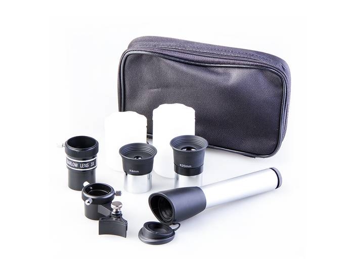 Телескоп снабжен экваториальной монтировкой EQ2 без единой пластиковой детали с возможностью микрометрического наведения телескопа по обеим осям. Два слова о том, как ей пользоваться: одна из осей экваториальной монтировки устанавливается параллельно оси вращения Земли, благодаря этому суточное вращение неба может быть компенсировано вращением телескопа вокруг только одной оси монтировки, но в сторону, противоположную вращению Земли. Иными словами, "вести звезду" вы можете вращая только одну рукоятку наведения (более подробно см. инструкцию). Телескоп поставляется с алюминиевым штативом с возможностью регулировки высоты. Распорки для ножек служат не только для повышения устойчивости, но и в качестве подставки под полочку для аксессуаров (идет в комплекте). Сумка для переноски, в которую укладывается весь комплект, позволяет безопасно (для оптики и внешнего вида) транспортировать прибор для выездов на природу или при походах в гости.