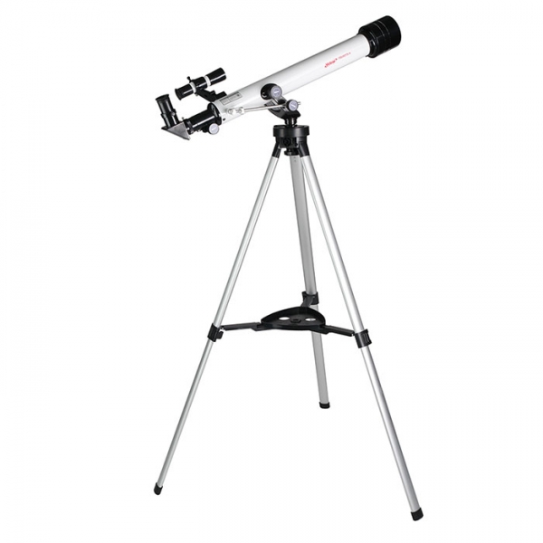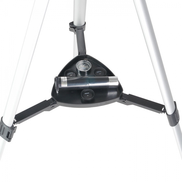 Удобная альт-азимутальная монтировка. Чтобы управлять телескопом по горизонту, следует вращать большое кольцо на головке штатива. Движение по вертикали: быстрая наводка делается трубой вручную и найденное положение фиксируется стопором, далее точная настройка осуществляется уже с помощью колесика, расположенного на рычаге тонкой настройки по высоте. Высота штатива — 110 см, она оптимальна для наблюдений из положения стоя — ведь окуляр расположен под углом 90° к трубе. Минимальная высота штатива — 60 см — позволяет вести наблюдение из положения сидя.