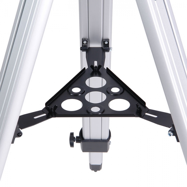 Этот недорогой зеркальный телескоп-рефлектор на экваториальной монтировке хорошо подойдет для первого знакомства с астрономией. Прибор имеет внушительные габариты (длина 860 мм, диаметр зеркала 76 мм). Благодаря большому фокусному расстоянию и богатой комплектации оптическими аксессуарами, вы можете выбрать оптимальное увеличение — от 45х для наблюдений днем (ближняя дистанция фокусировки 20,5 м), до 450х — для ночных небесных исследований. В этот прибор вы сможете рассматривать лунные кратеры диаметром около 6 км, Сатурн, Марс, некоторые из ярчайших туманностей. Вес самой трубы невелик, поэтому монтировка типа EQ2 (с возможностью установки дополнительного часового механизма) является оптимальной. Телескоп поставляется в комплекте с алюминиевым штативом, который имеет дополнительные металлические распорки (для повышения устойчивости), и металлическим столиком для аксессуаров.