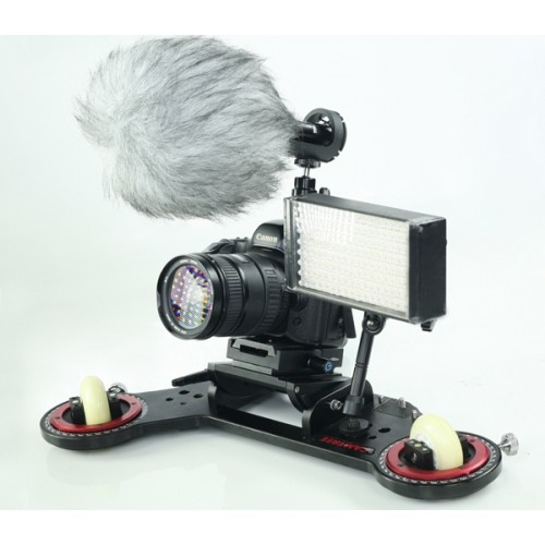 • Совместима со всеми моделями DSLR камер, камер небольшого размера, кинокамер, на тележку также можно установить такое дополнительное оборудование, как свет или микрофон