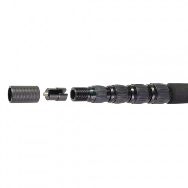Удочка микрофонная GreenBean MicHolder 350C Карбоновая телескопическая микрофонная удочка (бум) GreenBean MicHolder 350C выдвигается на длину 3,5 м из сложенного состояния длиной 88,5 см, весит всего 0,63 кг. На конце удочки находится винт с резьбой 1/4" (в комплекте переходник 3/8"). Конструкция содержит 5 сегментов, что облегчает выбор нужной длины, хранение и транспортировку. Секции выполнены из легкого и прочного углеродного волокна с толщиной стенки 1 мм, алюминиевые цанговые зажимы с резиновыми накладками надежно фиксируют секции. Благодаря прецизионно сбалансированной конструкции секции выдвигаются очень плавно и фиксируются без люфтов. Внутри удочки предусмотрен канал для кабеля. Рукоятка из вспененного материала длиной 63 см позволит комфортно удерживать удочку продолжительное время. В комплекте поставляется чехол с наплечным ремнем. Микрофонная удочка MicHolder 350C предназначена для использования в видео- и кинопроизводстве, позволяет поворачивать и направлять микрофон контролируемым образом, а также достаточно быстро передвигаться за источником звука.