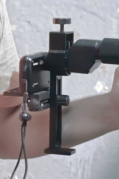 ниверсальный фотоадаптер предназначен для совместного использования оптических наблюдательных приборов (телескопа, микроскопа, монокуляра, бинокля или подзорной трубы) с компактными цифровыми фотокамерами. С его помощью можно получить фотографии не только наземных объектов, но и планет Солнечной системы. Фотоадаптер жёстко фиксируется на окуляре оптического прибора диаметром от 25 до 45 мм. Максимальная допустимая длина объектива фотоаппарата 50 мм. Цифровая фотокамера устанавливается на специальную платформу, оборудованную юстировочными винтами, что позволяет точно совместить объектив фотокамеры с окуляром наблюдательного прибора. Универсальный фотоадаптер может устанавливаться на штатив с гнездом крепления ¼ дюйма. Условия эксплуатации и хранения универсального фотоадаптераУниверсальный фотоадаптер рассчитан на длительную эксплуатацию.