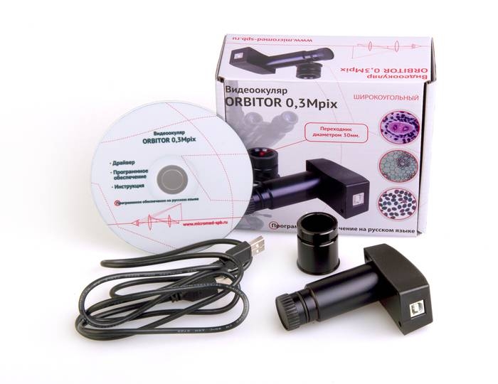 0,3 MPix Видеоокуляр ORBITOR является малоформатной цветной камерой (CCD), позволяющей захватывать изображения, видимые через ваш микроскоп, проявлять их в полном цвете на мониторе и сохранять их как цифровые компьютерные файлы. Вы можете затем настраивать их вид и сохранять их для учета ваших наблюдений. Эти виды могут также быть вставлены в компьютерные документы или распечатаны на любом стандартном принтере. Видеоокуляр ORBITOR также может использоваться в качестве дисплея или учебного прибора, позволяющего группе людей увидеть предмет изучения под микроскопом.
