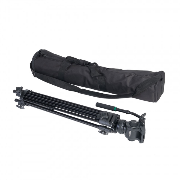 Видеоштатив GreenBean HDV Elite 754 GreenBean HDV Elite 754 включает алюминиевую треногу и видеоголову с регулируемым жидкостным демпфированием, а также регулируемым и отключаемым контрбалансом. Видеоштатив предназначен для использования с DSLR камерами и камкордерами весом до 6 кг. Максимальная высота 193 см, вес комплекта 5,67 кг. Видеоголовка прецизионной конструкции Конструкция 2D-видеоголовы тщательно разработана для обеспечения превосходной балансировки, отсутствия нежелательных вибраций, сглаженных движений вокруг осей и точного управления камерой. Дизайн головы обеспечивает быстрое управление панорамированием, защиту от случайных толчков, простую и точную настройку. Все основные элементы выполнены из литого алюминиево-магниевого сплава с последующей обработкой на современном металлорежущем CNC оборудовании. Отключаемый и регулируемый механизм контрбаланса Механизм контрбаланса имеет три уровня регулировки для использования с камерами различного веса, также имеется возможность полного отключения контрбаланса. В основе системы контрбаланса лежит механизм, регулирующий силу натяжения внутренней пружины, который позволяет быстро настраивать контрбаланс для каждой конкретной камеры. Регулируемый механизм демпфирования по двум осям Жидкостный настраиваемый фрикционный механизм обеспечивает плавную работу при панорамировании и наклоне в широком диапазоне температур, с любым типом оборудования, при любой допустимой нагрузке. Диапазон угла наклона головы: +90° / -70°. Положение головы по осям панорамирования и наклона фиксируется независимо. Быстросъемная скользящая площадка Скользящая быстросъемная площадка размером 40х104 мм поможет сбалансировать камеру. На площадке находится подпружиненный фиксатор, препятствующий сдвигу камеры, в комплекте винты 1/4" и 3/8". Площадка оборудована предохранителем, который защитит камеру от выскальзывания при случайном ослаблении фиксатора. Установка рукоятки панорамирования слева или справа Рукоятка панорамирования обеспечивает высокую точность ведения камеры и может быть установлена слева или справа от головки. Длина рукоятки регулируется в пределах 490 мм. Универсальный тип крепления видеоголовки Видеоголовка может быть установлена на штатив с помощью шаровой опоры диаметром 60 мм или на плоское основание с винтом 3/8". Благодаря этому, головку можно использовать на различных треногах, тележках, слайдерах, кранах и т.д. Пузырьковый уровень Для точного выставления головки по уровню горизонта, на базе головки предусмотрен пузырьковый уровень. Жесткая конструкция треноги 3-секционные телескопические алюминиевые ноги обеспечивают устойчивость и прочность. Верхняя секция из сдвоенных трубок препятствует скручиванию треноги. Металлические винтовые зажимы надежно и быстро фиксируют секции. Средняя растяжка Для усиления штатива используется средняя растяжка, которая не позволяет ногам разъезжаться и обеспечивает быстрое затухание колебаний. Такое размещение растяжки обеспечивает возможность использовать штатив на неровных поверхностях (камнях, ступенях лестницы и т.д.).