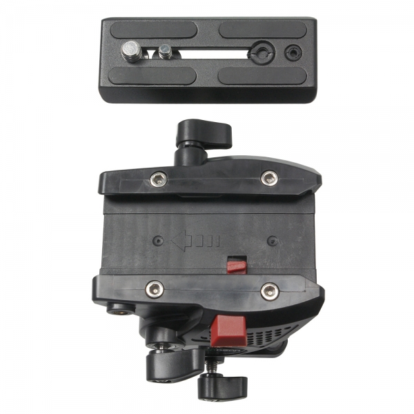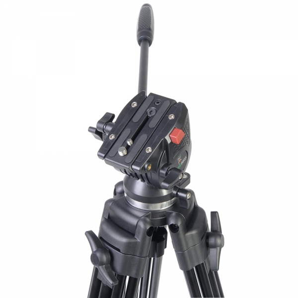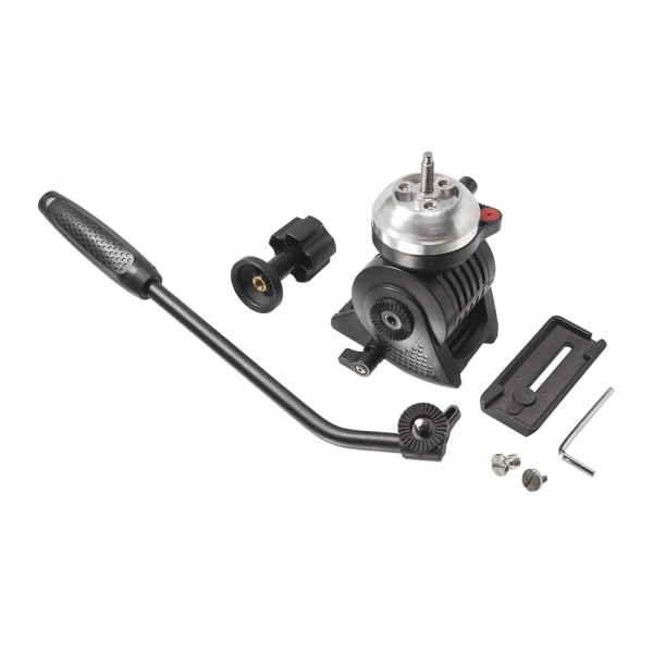 Съемная видеоголова изготовлена из ударопрочного пластика ABS и крепится к штативу с помощью чаши 75 мм. Система жидкостного демпфирования по оси наклона и панорамирования создает необходимое усилие, противостоящее нежелательным рывкам. Механизм контрбаланса обеспечивает возможность центровать угол наклона камеры и приводит голову в исходное горизонтальное положение. Быстросъемная скользящая площадка оборудована механизмом, предохраняющим камеру от случайного выскальзывания при ослаблении зажима. Для установки камеры в комплект входят винты 1/4" и 3/8". В основание головы встроен пузырьковый уровень, который поможет выставить камеру по горизонту.