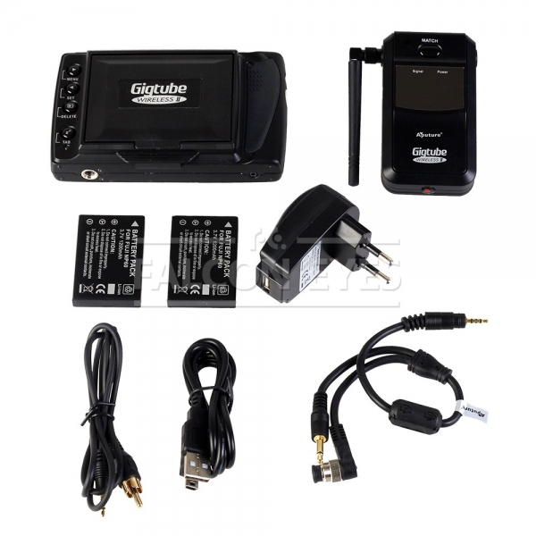 Видоискатель Aputure Gigtube Wireless II GWII-N1 позволяет дистанционно передавать изображение с матрицы фотоаппарата на удаленный до 100 м беспроводной монитор и управлять затвором камеры. Данная версия видоискателя позволяет также управлять режимом видеосъемки (старт/стоп)*. Передатчик из комплекта GWII-N1 предназначен для Nikon D2X(S),D2H(S), D1H, D1(X), D800(E), D700, D300, D200 (возможно использование с другими камерами, соответствующий кабель приобретается отдельно). Устанавливается в горячий башмак камеры, соединяется с камерой с помощью проводов из комплекта. Передача графических данных осуществляется через помехозащищенный радиоканал с частотой 2,4 ГГц. Данная версия передатчика оборудована встроенной видеокамерой для работы с DSLR камерами, не имеющими функции Live View.