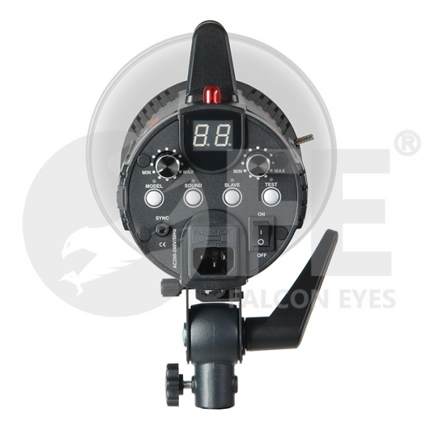 Для управления моделирующей лампой предусмотрен отдельный регулятор мощности и кнопка включения/отключения. Лампа автоматически отключается через 2 часа, во избежание перегрева при работе, когда пользователя нет на месте. В моноблоках Falcon Eyes Sprinter установлена галогенная лампа мощностью 150 Вт, цоколь Е27. При помощи приобретаемого отдельно адаптера можно использовать лампы с цоколем G6.35. Максимальная рекомендуемая мощность лампы накаливания (галогенной) с цоколем Е27 — 650 Вт, при использовании пилотного света с лампой мощностью 500 Вт и выше в течение часа, возможен перегрев насадок, в особенности не жаропрочных софтбоксов. Будьте осторожны!